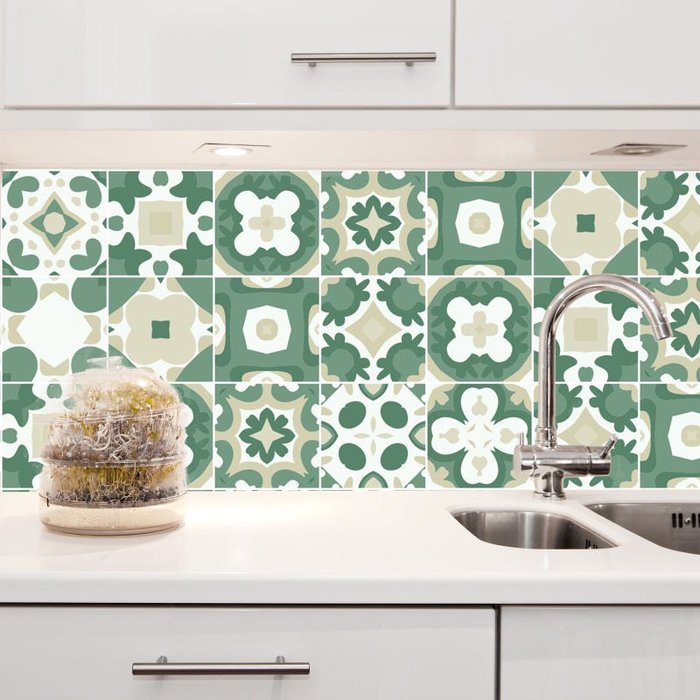 Adesivo de Parede Azulejo 20x20cm Vila Do Conde para Cozinha verde
