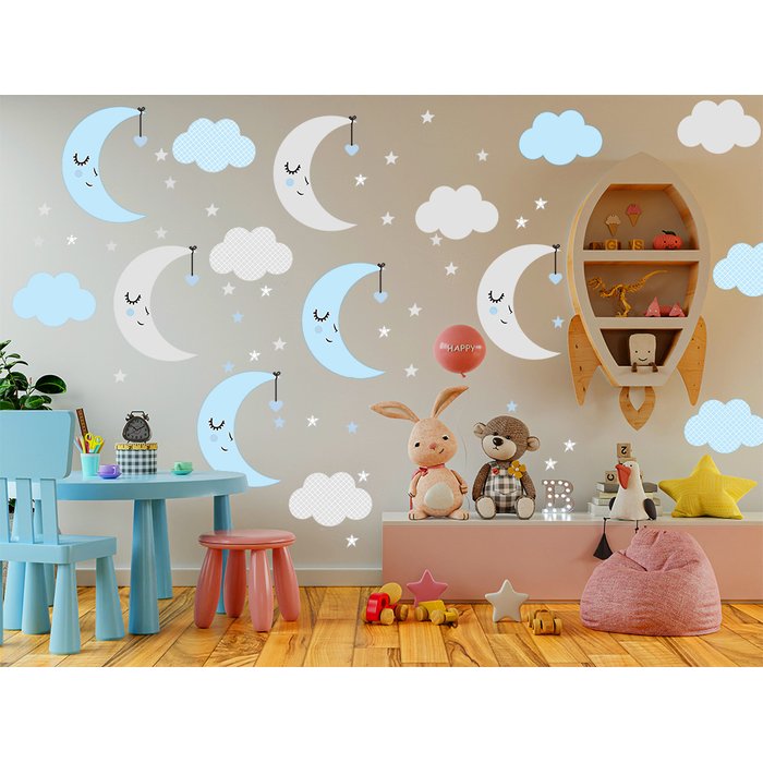 Adesivo De Parede Baby Nuvem Com Lua Vários Modelos Infantis