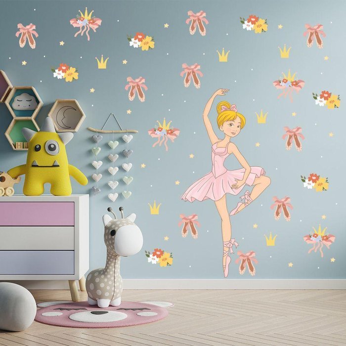 Adesivo De Parede Decorativo Bailarina Balé Ballet MEDIDAS -Kit 1 folha com: * 1 bailarina 30x60 cm * 4 flores com laço 14,5x14 cm * 6 coroas 6,5x6,7 cm * 9 sapatilhas 10,5x11,5 cm * 6 flores 10,8x7,2 cm * 20 flores pequenas 2,5x2,5 cm * 27 pontinhos brancos 0,8x0,8 cm MATERIAL -adesivo vinílico fosco não tóxico TIPO DE IMPRESSÃO - Impressão em alta resolução livre de imperfeições. OBSERVAÇÕES Podem ser colocados no quarto das crianças, na sala de estudos, no escritório, na geladeira, na sala de brinquedos, no box do banheiro ou em muitos outros lugares. A aplicação é muito simples, é só tirar o adesivo e colar como quiser. Os Adesivos já seguem com os recortes para agilizar e facilitar sua instalação, cortes feitos com alta precisão no momento da impressão para garantir a melhor qualidade. Podem ser aplicados em paredes lisas, com tinta acetinada, latex e acrílica, móveis, espelhos, portas, box de banheiro, livres de poeira ou pó de gesso. Não aplicar sobre tinta fresca, tinta magnética, superfícies irregulares ou texturizadas, locais com infiltrações. * Imagem ambiente ilustrativa PRODUTO NÃO TOXICO