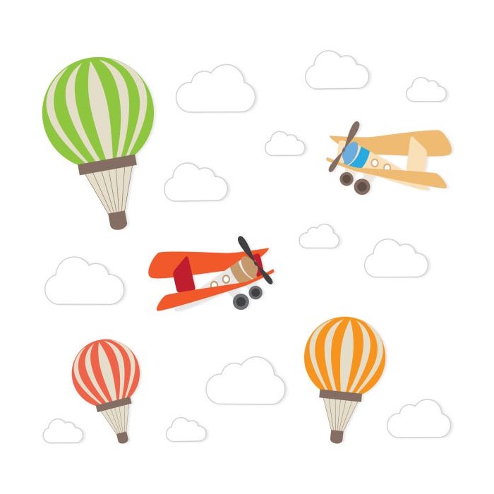 Adesivo de Parede Balões e Aviões para Quarto de Bebê Cobre 2m² Colorido