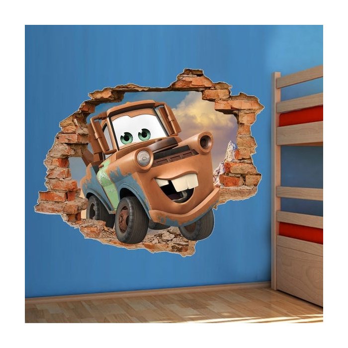 Adesivo de Parede Buraco Falso 3D Carros Mate - M 61x75cm