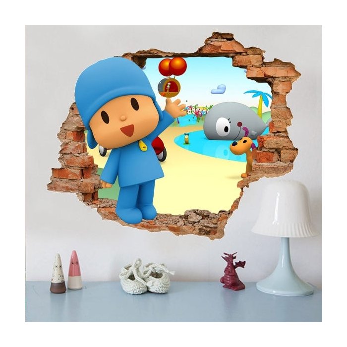 Adesivo de Parede Buraco Falso 3D Infantil Pocoyo - M 61x75cm
