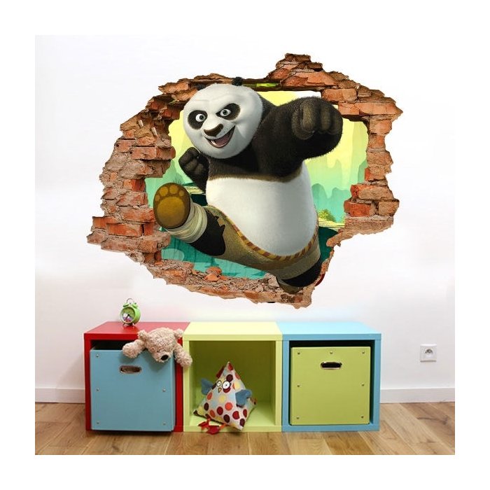 Adesivo de Parede Buraco Falso 3D Kung Fu Panda - M 61x75cm