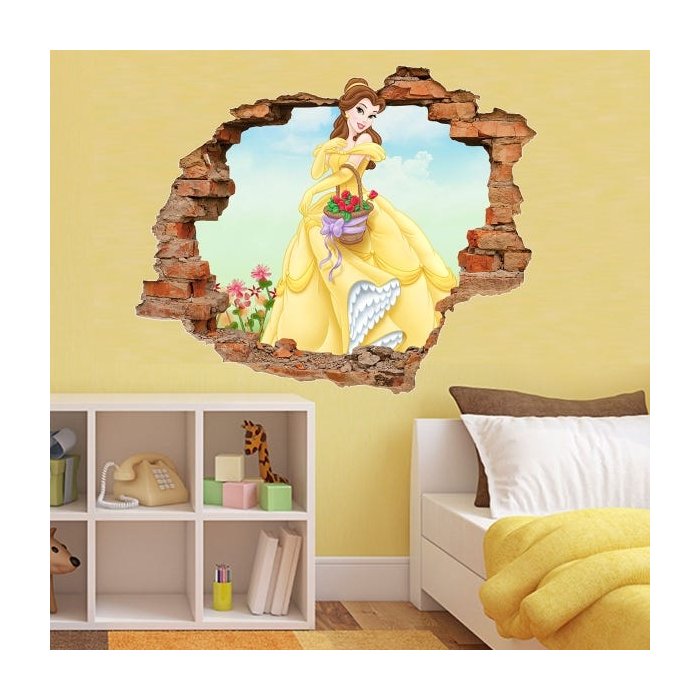 Adesivo de Parede Buraco Falso 3D Princesa Bela 02 - M 61x75cm