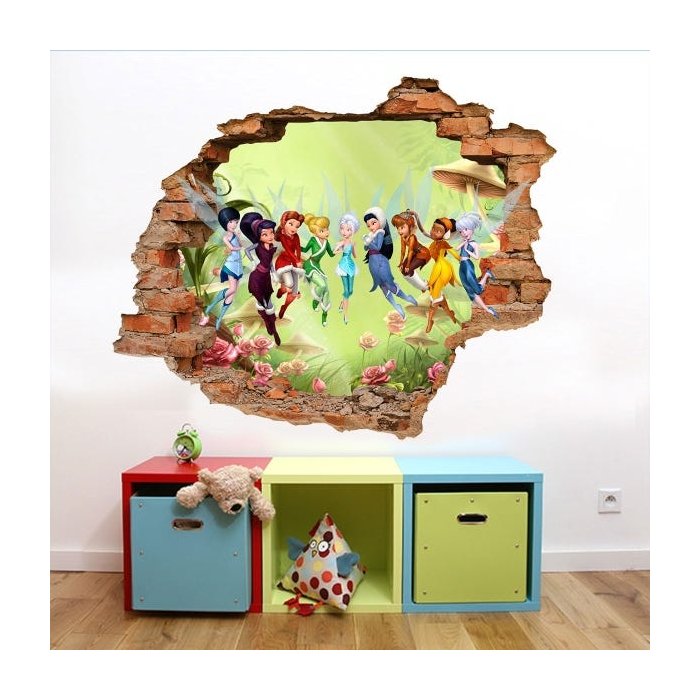 Adesivo de Parede Buraco Falso 3D Sininho e Fadas - M 61x75cm