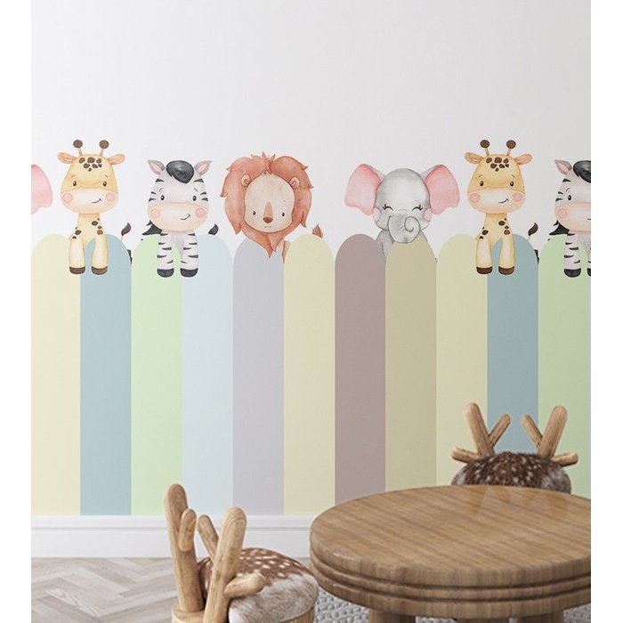 Adesivo de Parede Cerquinha Animais Safari Aquarela Colorido
