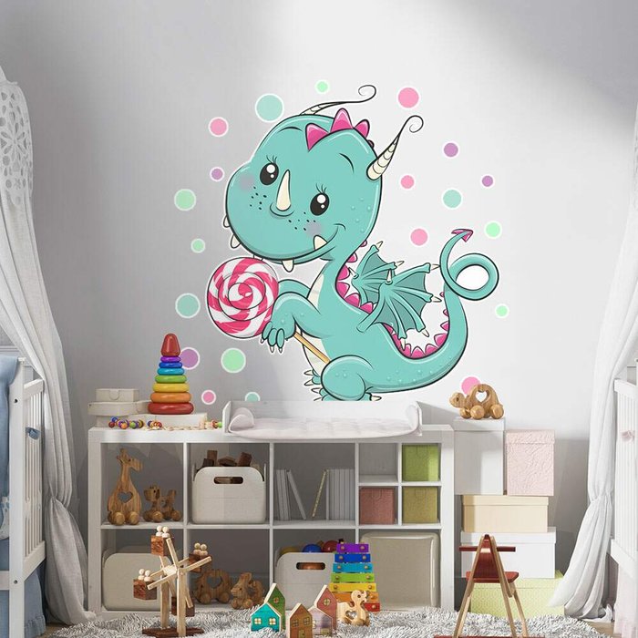 Adesivo de Parede Dinossauro Baby com Pirulito-Extra Grande 85x86cm Colorido