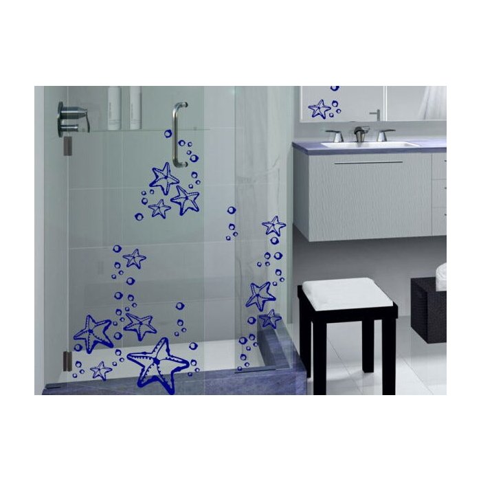 Adesivo de parede - Estrela-do-marUma folha de aprox. 48x46 cm contendo: - 3 estrelas grandes 17x15 cm; - 4 estrelas médias 11x10,5 cm; - 12 estrelas pequenas 6x5,5 cm; - 72 bolhas de ar de tamanhos variados.