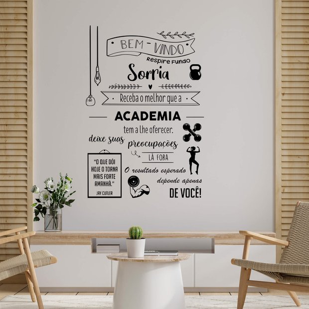 Adesivo de Parede Frase Bem Vindo Academia Palavras Motivação Força Recepção Loja Fitness