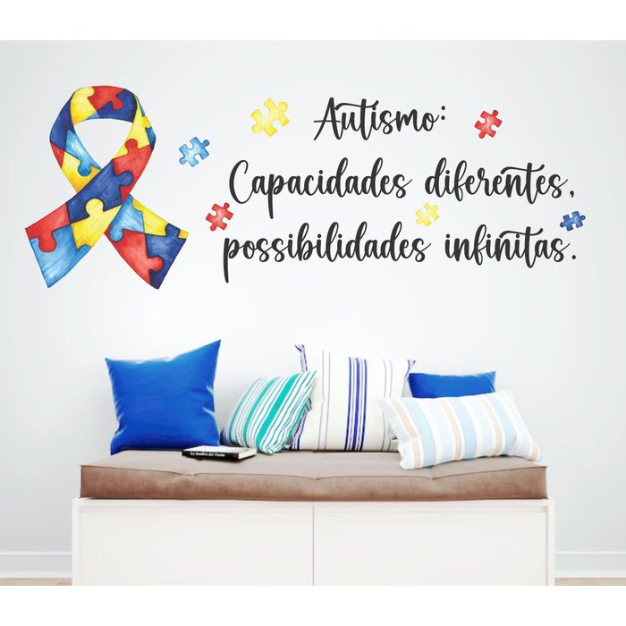Adesivo de Parede Frase e Laço do Autismo Quebra Cabeça