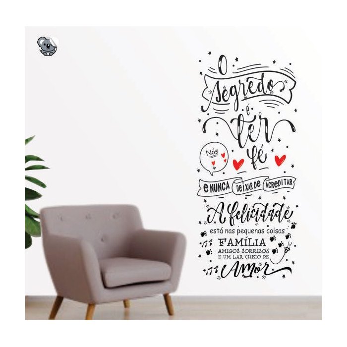 Adesivo de Parede Frases - O segredo é ter féMedida: 1,00 x 45cm