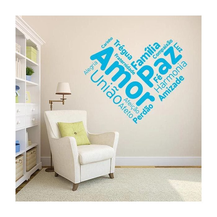 ADESIVO DE PAREDE - FRASE: PAZ E AMOR 2 - Prata - 90X75 Prata