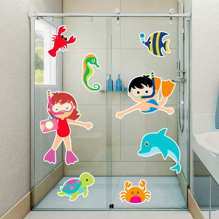 Adesivo de Parede Fundo do Mar Menino e Menina-Pequeno 100x50cm