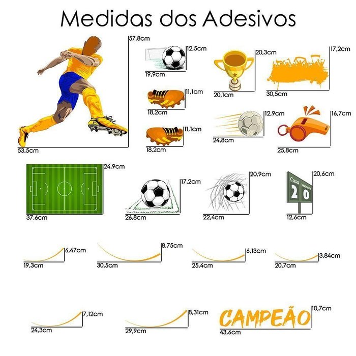 - Gol e Bola; 15,5cm de largura X 19,9cm de comnto;