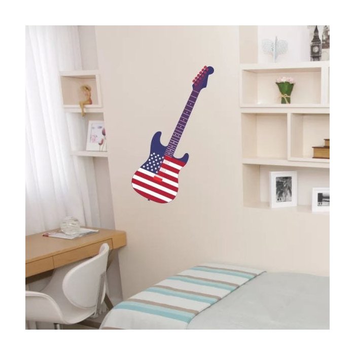 Adesivo de Parede Guitarra com a bandeira dos Estados Unidos. Decore sua casa de uma forma simples e fácil. Compre Já!.