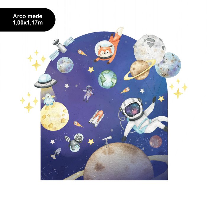Adesivo de Parede Infantil Arco Decorativo Astronauta Aquarela - Painel