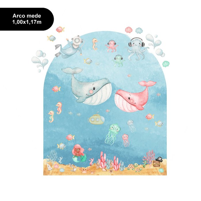 Adesivo de Parede Infantil Arco Decorativo Fundo do Mar Aquarela - Painel