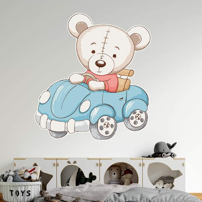 Adesivo de Parede Infantil Ursinho no Carrinho-Pequeno 55x51cm