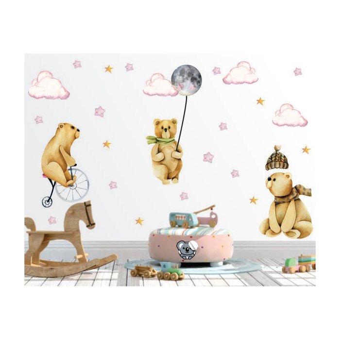 Adesivo de Parede Infantil Urso Bicicleta Lua Aquarela Retro