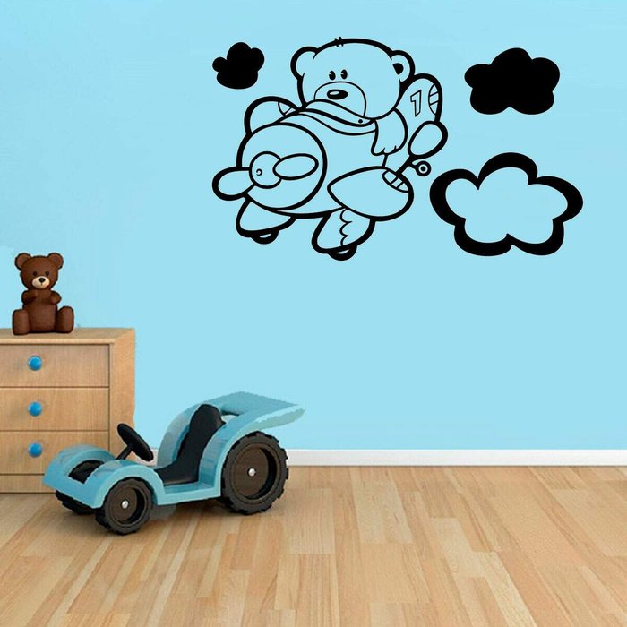 Adesivo de Parede Infantil Urso no Avião-Extra Grande 98x59cm
