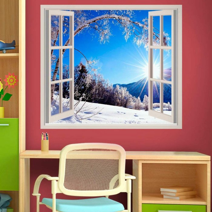 Adesivo de parede Janela Falsa Nevando-Pequeno 80x50cm