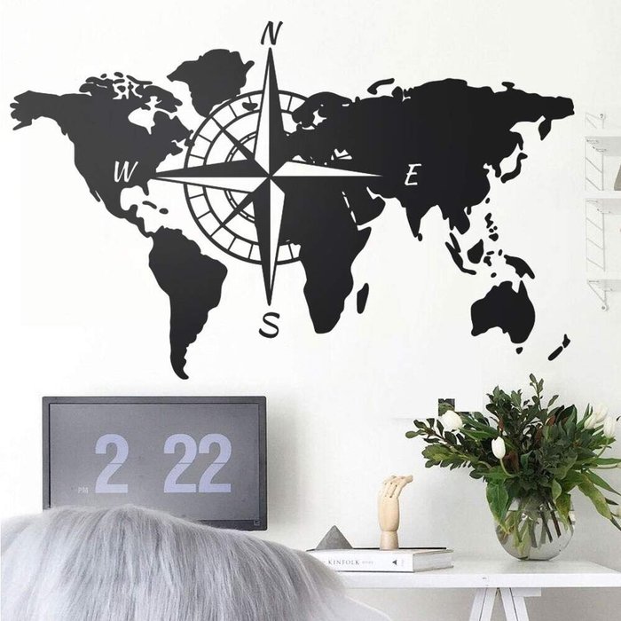 Adesivo de parede Mapa-Múndi com Rosa dos Ventos no Centro-Extra Grande 75x118 cm