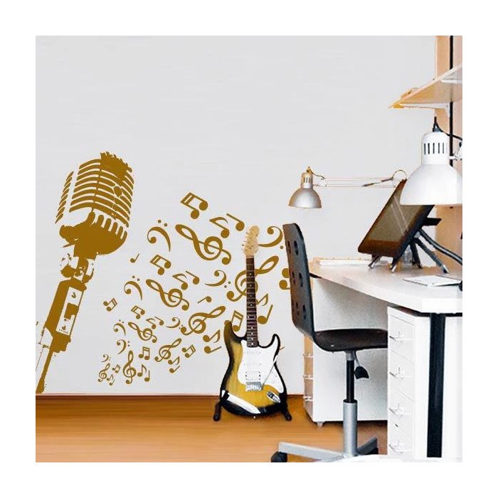 ADESIVO DE PAREDE - MICROFONE RETRÔ - Dourado - 104X93