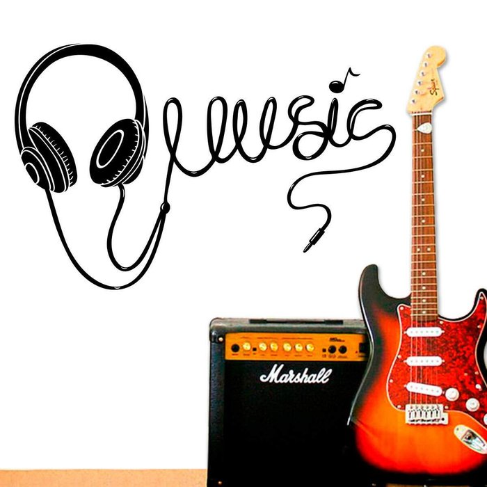 Adesivo de Parede Música Fone de Ouvido-Grande 90x58cm