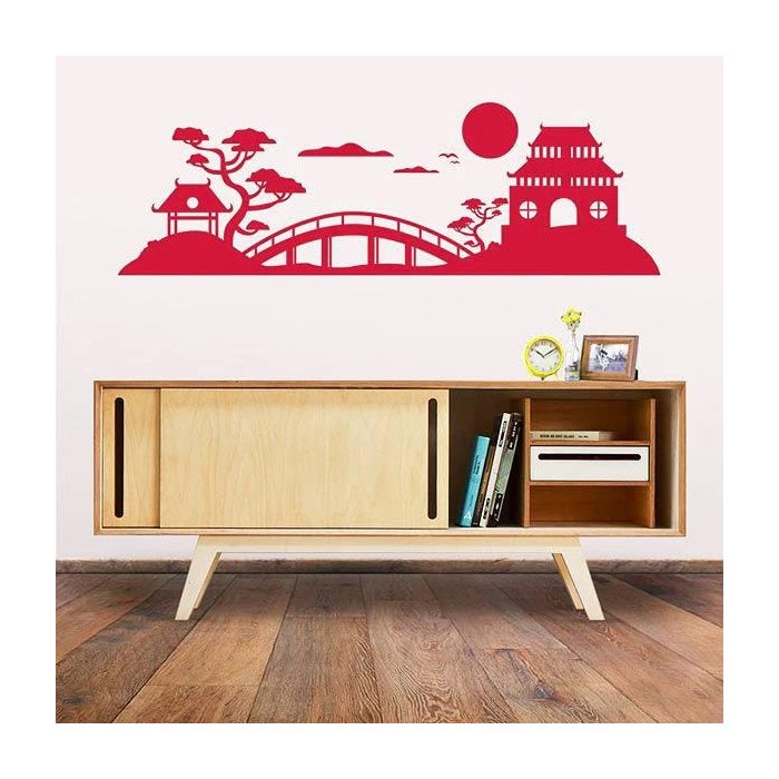 ADESIVO DE PAREDE - PAISAGEM: ORIENTE 1 - Cinza Médio - 230X73