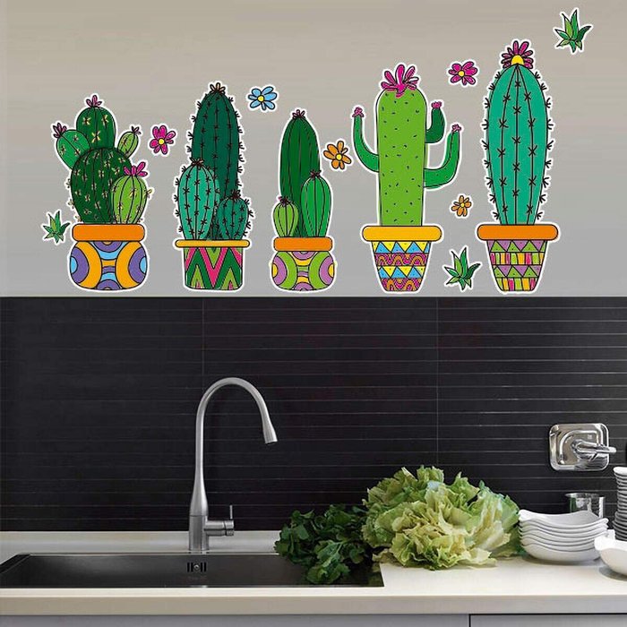 Adesivo de Parede para Cozinha Cactos-Grande 85x45cm