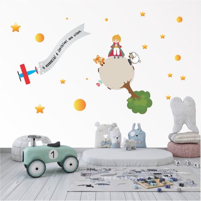 Adesivo de Parede Pequeno Príncípe com frase o essencial é invisivel aos olhos