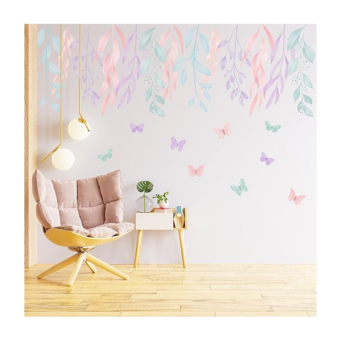 Adesivo de Parede Plantas em Aquarela Candy Adesivos Primeiro Quarto 4 Cartelas