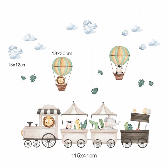 - Medidas: Tranzinho 115x41cm; Balões 18x30; nuvens em média 12cm de largura.