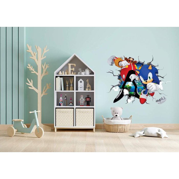 Adesivo de Parede Sonic e Dr Eggman:65 X 49 Cm