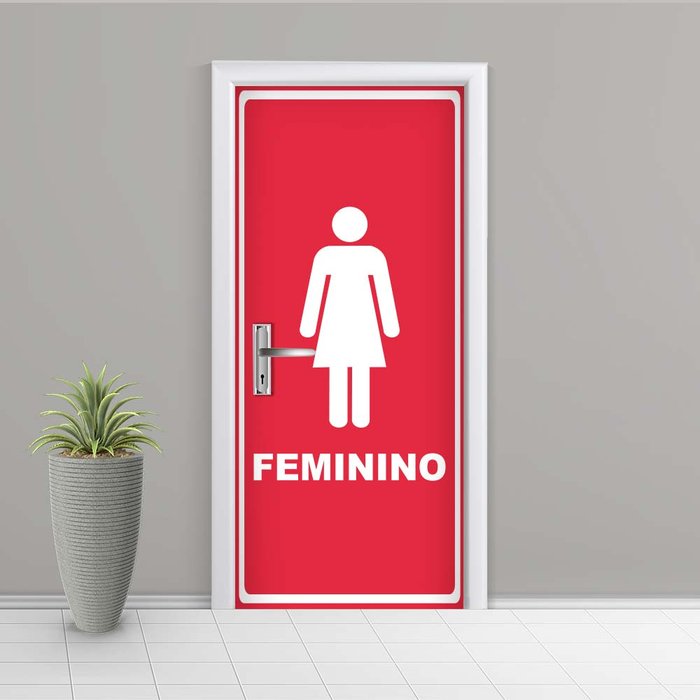 Adesivo de Porta Banheiro Feminino 3 Arte Destaque M - 0,83 X 2,13 Metros