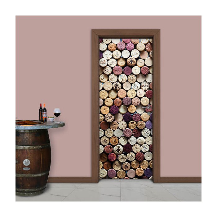 Adesivo de Porta Vinho Rolhas Arte Destaque G - 0,93 X 2,13 Metros