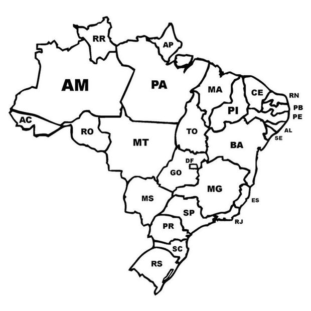 Adesivo Decorativo Brasil Mapa Estados:preto Preto