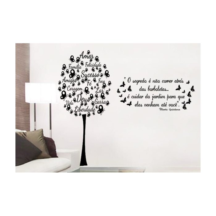 Adesivo Decorativo de Parede Combo Árvore de Borboleta com Frases Grande