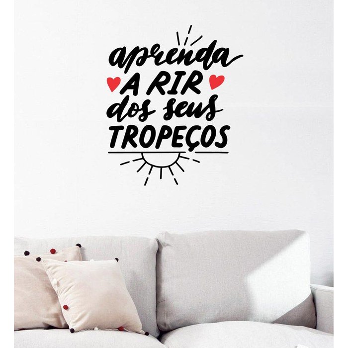 Adesivo Decorativo de Parede Frase Aprenda a Rir dos Seus Tropeços