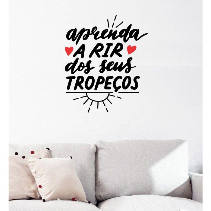 Adesivo Decorativo de Parede Frase Aprenda a Rir Dos Seus Tropeços Única