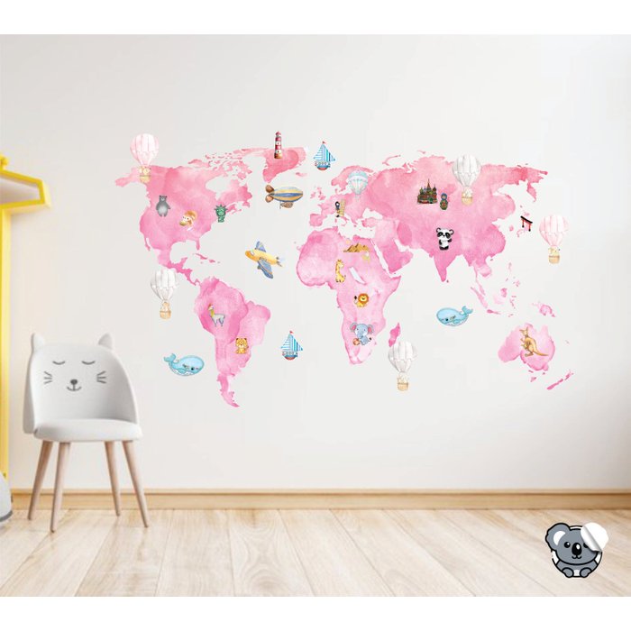 Adesivo Decorativo Infantil Mapa Mundi Atlas