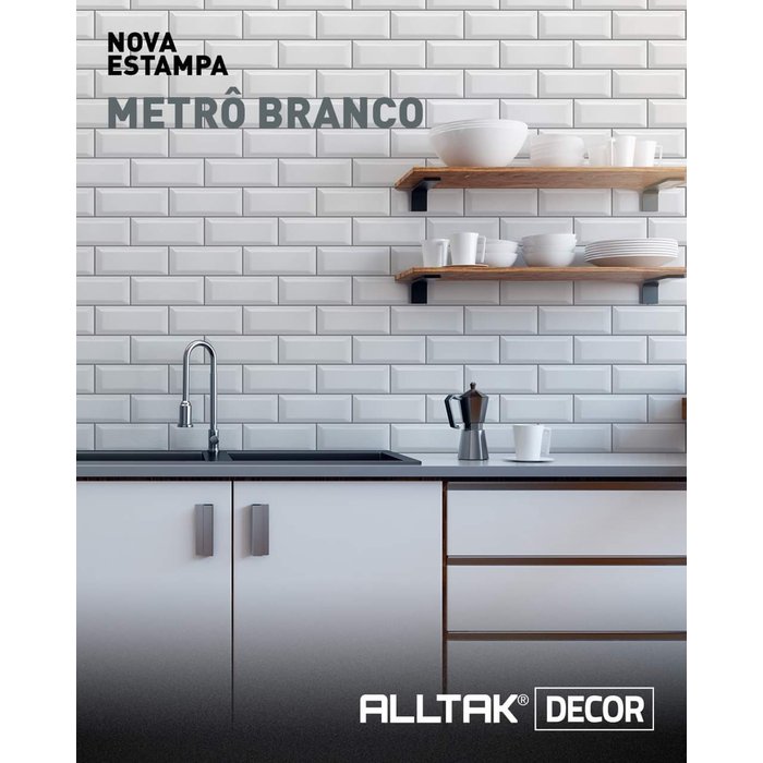 Adesivo Decorativo Metrô Branco Azulejo Retangular 15M