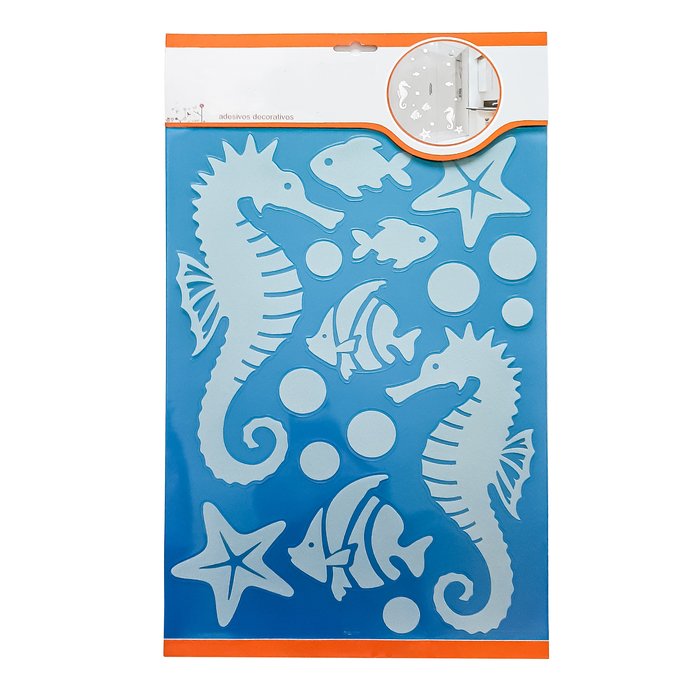 Adesivo Decorativo Para Box De Banheiro Vidro Janela Espelho Papel de Parede Desenho Cavalo Marinho