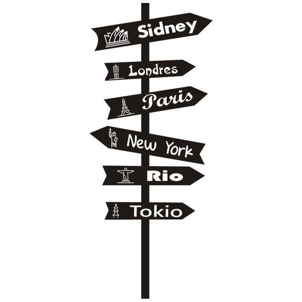 Adesivo Decorativo Parede Placas Cidades preta