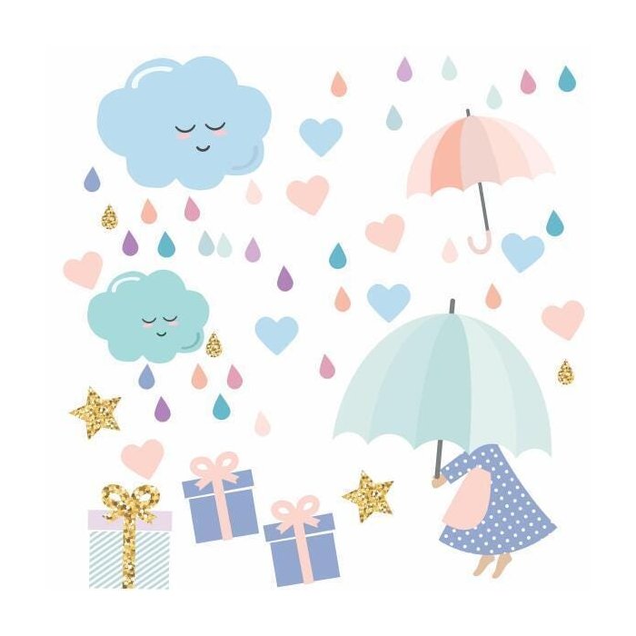 Adesivo Guarda Chuva Nuvens Presentes Parede Infantil C11