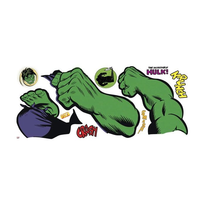 Adesivo Hulk Clássico dos Quadrinhos Gigante RMK3242GM, uma fera verde como antigamente, para os fãs dos quadrinhos e personagens clássicos de Marvel. Adesivos RoomMates Classícos Marvel são sempre uma ótima opção para personalizar um ambinete. Composto por 19 elementos adesivos. Os adesivos RoomMates colam e descolam da parede sem danificar a parede, podendo ser remanejado para outra parede após aplicado. Alta tecnologia adesiva para poder reutilizar o adesivo em paredes diferentes, sempre que preferir. Tamanho em cm (LxA): 111 x 106,7.