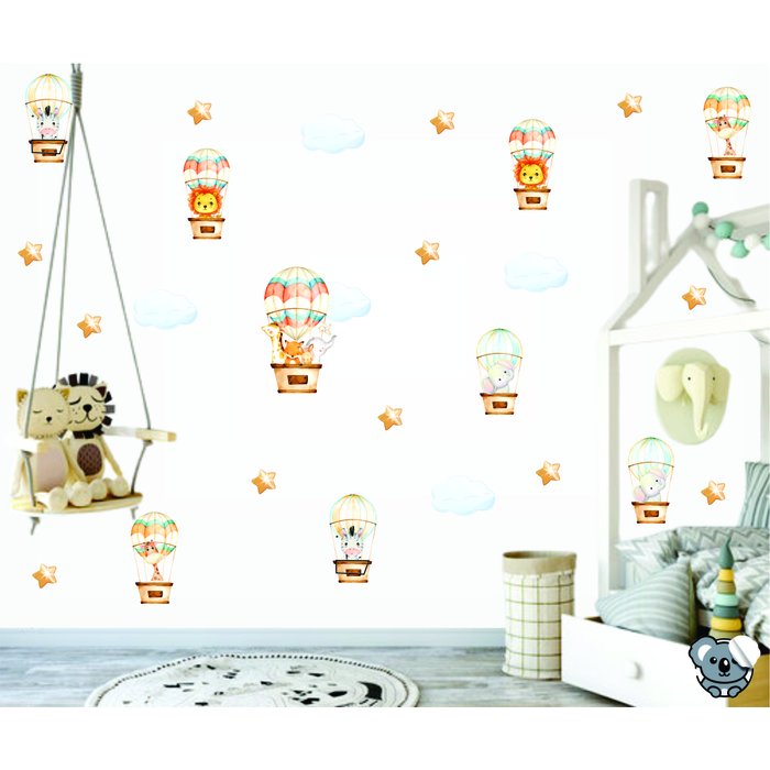 Tudo feito com amor e carinho, Adesivos de qualidade e exclusivos, conheça a Colakoala e Surpreenda-se!Adesivo de parede Balões Safari AquarelaContém 1 balãoi de Aproximadamente 30cm e 4 Balões de 20cm cada / 8 Nuvens de 10cm cada e 50 estrelas de 3cm cadaImpressão UV sem fundo e sem bordasAdesivo em PVC auto-colante com recorte sem fundos e sem bordasNossos adesivos são de fácil instalação, não havendo a necessidade de experiência ou habilidades especiais!Acompanha Manual de instalação!Sinta o prazer de fazer você mesmo de forma profissional e com toque único e pessoal.Deixe seu cantinho único como você.Seja Bem vindo/a e boas compras