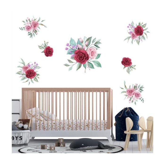 Adesivo kit infantil flores rosa e marsala aquarela rosa e marsala