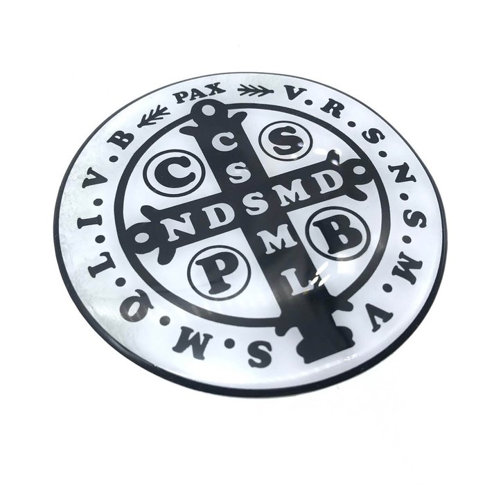Adesivo Medalha de São Bento Branco Resinado Médio Fornecedor 6 F6-ct8-167-a Preto e Branco