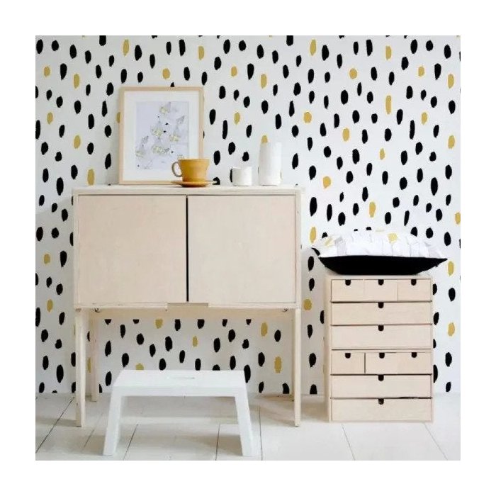 Decore sua parede com Adesivo papel de parede menina pontos preto e dourado, móvel ou eletrodoméstico, adesivo para o quarto infantil, decoração da sala, decoração do quarto, adesivo papel de parede para quarto do bebê, adesivo da sala de jantar, papel de parede cozinha, várias possibilidades de uso. Mais fácil pra instalar, pois não é necessário o uso de cola.